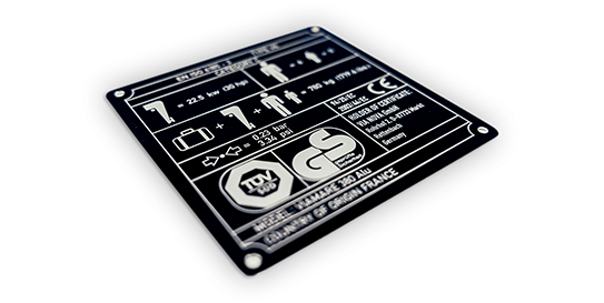 Dieses Verfahren ermöglicht es, dauerhaft und hochpräzise Informationen auf eloxierten Aluminiumplatten aufzubringen. Der Unterdruck sorgt für tief eindringende, kontrastreiche Kennzeichnungen, die besonders widerstandsfähig gegen Abrieb sind.